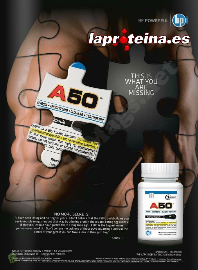 A50 está diseñado solamente culturistas experimentados y atletas serios, para ayudar a promover un aumento significativo de la fuerza, de la masa muscular y mejorar el aspecto físico general.