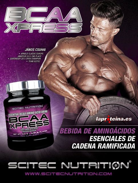 BCAA Xpress de Scitec Nutrition es un suplemento en polvo que contiene una mezcla de aminoácidos de cadena ramificada puros (conocidos como BCAAs por sus siglas en inglés "branched-chain amino acids") y que se presentan con unos deliciosos sabores a mango, pera, cola-lima, pink limón, manzana, pomelo y melón.