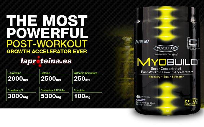 Myobuild™ de la nueva línea “Super Concentrated Series” de Muscletech es el primer producto post-entrenamiento con una fórmula concentrada que ofrece una dosis única científicamente estudiada de todos los ingredientes clave necesarios para después de entrenar.
