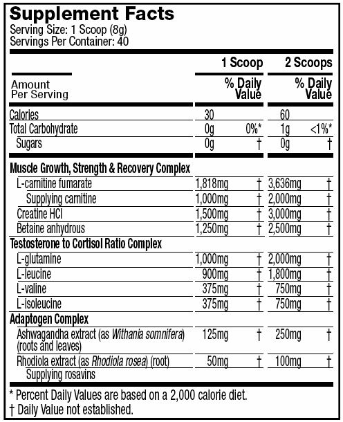- L-carnitina, un ingrediente que mejora drásticamente la recuperación post-entrenamiento a través de una una reducción de los daños en el tejido muscular y una optimización en la reparación de dichos tejidos.