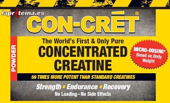 Concentrated Creatine de Con-Cret de la marca ProMera Sports es “creatina concentrada”, que según los diversos estudios realizados resulta ser 59 veces más potente que la creatina estándar.