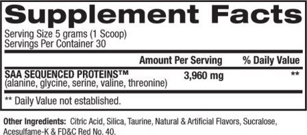 Como puedes ver, los SAAs son una cadena de 18 aminoácidos concretos - pero, los investigadores encontraron que mucho más importante que estos la inclusión de estos 18 aminoácidos concretos, es la precisa relación de cinco de ellos lo que le confiera a Blox sus características únicas. Cuando estos cinco SAAs están en esta secuencia precisa y exacta relación... es como encender las luces de todo un estadio de fútbol en mitad de la oscuridad de la noche.