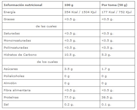 - Posee un porcentaje muy alto de proteína por dosis (77% de porcentaje real proteico).