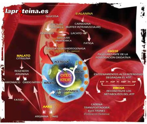 La citrulina malato regenera los depósitos de ATP y nos ayuda a eliminar el ácido láctico producido por los entrenamientos intensos y que posteriormente nos producirá las ya sobradamente conocidas agujetas.