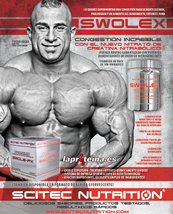 Swole-FX de Scitec Nutrition te proporcionará las mejores congestiones gracias a la combinación de la que para muchos es la mejor creatina del momento gracias a su solubilidad y a la L-arginina.