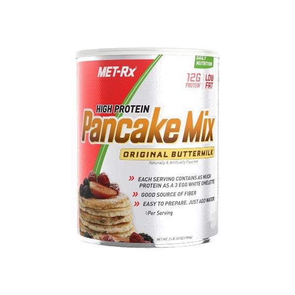High Protein Pancake Mix de MET-Rx es un suplemento en polvo paraa preparar de fórma rápida y fácil unos sabrosos panqueques ideales para tomar como un delicioso desayuno alto en proteínas de alto valor biológico.