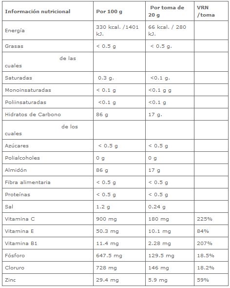 Información nutricional: