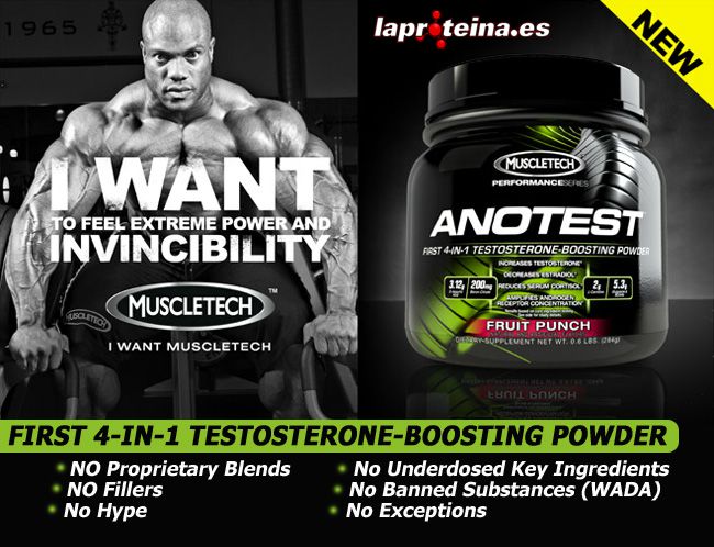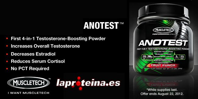 AnoTest™ de la nueva línea Performance Series de Muscletech es el mejor potenciador de la testosterona 4-en-1, que aumenta la testosterona total, la testosterona libre, amplifica la concentración del receptor de andrógenos y que reduce el cortisol.