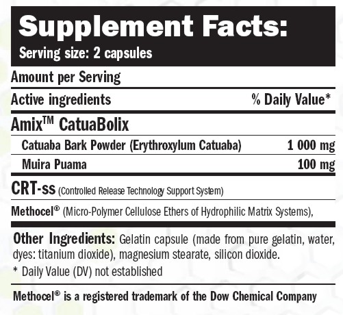 CatuaBolix de la marca nº1 en Europa Amix™ Nutrition es un suplemento que contiene una mezcla de polvo de corteza de Catuaba (erythroxylum catuaba) y Muira Puama, dos de los estimulantes naturales de testosterona más potentes que existen.