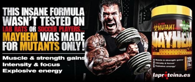 Mutant Mayhem de Mutant® es un suplemento de pre-entrenamiento en polvo diseñado para mejorar el rendimiento durante el entrenamiento, amplificar la intensidad del mismo y proporcionar el soporte necesario para optimizar la síntesis proteica.