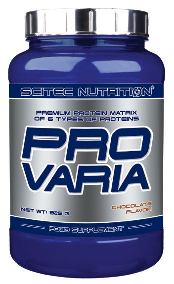 ProVaria de Scitec Nutrition es una matriz de proteínas superior que contiene 6 de los mejores tipos de fuentes de proteína de calidad: concentrado de proteína de suero, aislado de proteína de suero, aislado de proteína de leche completa, caseína, proteína de huevo y aislado de proteína de soja.