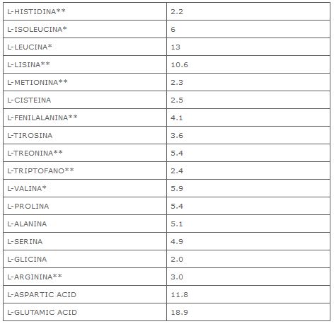 Aminograma (g/100 gramos de proteína):