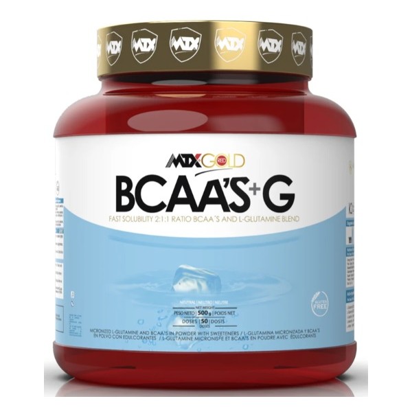 BCAA+G de MTX Elite BodyBuilding es un suplemento nutricional en polvo diseñado para deportistas que contiene una combinación de los tres aminoácidos de cadena ramificada (L-Leucina, L-Isoleucina, y L-Valina) en una proporción 2:1:1, L-glutamina al 50% y enriquecido con glicina.