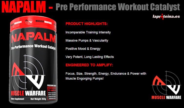 Como un suplemento dietético, Napalm es una fórmula de alta potencia que se puede mezclar en agua o su bebida deportiva favorita.