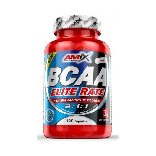 BCAA Elite Rate de Amix™ Nutrition es un suplemento en cápsulas que contiene aminoácidos de cadena ramificada con ratio 2:1:1 entre leucina, valina e isoleucina de la mayor calidad y pureza posible.