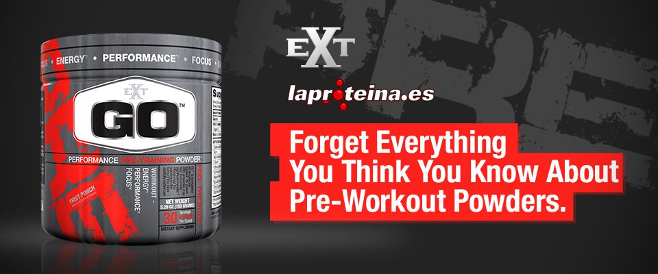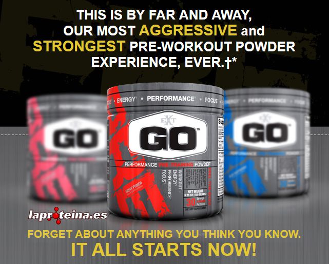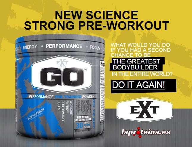 Go™ de EXT Sport es el nuevo y monumental pre-entrenamiento diseñado para construir más músculo, es una nueva vuelta de tuerca con la conseguirás unos grandes bombeos musculares, más fuerza, deficinición, vascularidad, concentración mental y una energía sin extraordinaria.