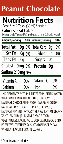 Agua purificada triple filtrado, cacao en polvo desgrasado, saborizante natural de chocolate, fibra de celulosa, sal, almidón de maíz, goma xantana, extracto de cacahuete, saborizante de cacahuete tostado, colorante caramelo, ácido láctico, sodio benzoato (para preservar la frescura).