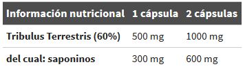 - 500 mg de extracto de Tribulus terrestris por cápsula.