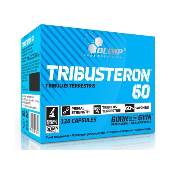 Tribusteron® 60 de Olimp Sport Nutrition contiene extracto en polvo de puncturevine (Tribulus terrestris L.). que es una fuente de glucósidos, saponinas esteroides (principalmente protodiscinas y protogracillinas), alcaloides de plantas y bioflavonoides diseñado para mejorar el balance hormonal, promover el deseo y la capacidad sexual, además de mantener la salud del sistema respiratorio y apoya la resistencia al dolor.