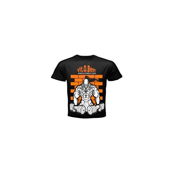 Este nuevo modelo de camiseta 100% algodón de Vit.O.Best no te dejará indiferente. Su color negro y su agresivo diseño en blanco y naranja la convierten en esa camiseta que te gustará llevar. Úsala en el gimnasio o para vestir de un modo "sport" y enseña lo que hay en ti.