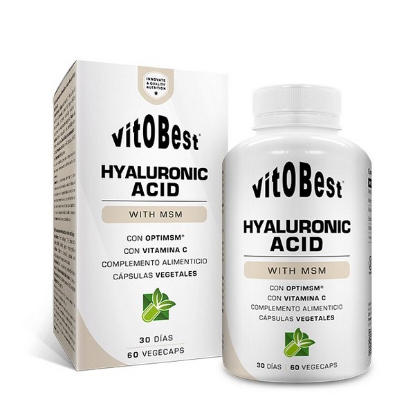 Ácido Hialurónico de Vitobest es un suplemento en cápsulas vegetales que contiene una fórmula que combina 150 mg de ácido hialurónico sódico con 200 mg de Metil-Sulfonil-Metano (MSM) (OptiMSM®), que ha sido diseñada para ayudarte a mantener el correcto funcionamiento de tus articulaciones y preservar saludables tu piel, cartílagos y demás tejidos.