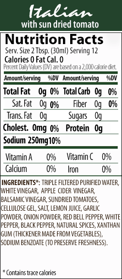 Italian Sun Dried Tomato Salad Dressings es una salsa italiana con tomates secados al sol única libre de glúten, es como tomar una auténtica salsa pero sin aportar las calorías que aportarías con una salsa tradicional, siendo una salsa apta para cualquier tipo de dieta y apta para evitar debilidades y momentos en los cuales se requiere comer algo realmente sabroso.
