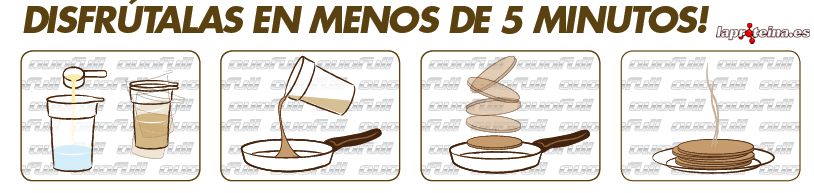 Mezclar 250 ml de agua o leche con 4 cacitos de Pancakes en un mezclador, agitar fuertemente unos segundos y listo para tomar.