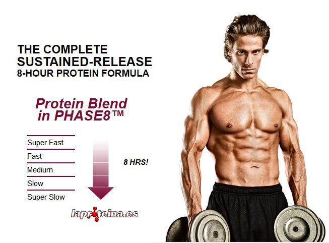 La nueva Phase8™ te proporciona una entrega constante de aminoácidos durante 8 horas, lo que la convierten en una proteína ideal para tomar en aquellos momentos en los que no podemos consumir proteína pero la necesitamos, como por ejemplo por la noche mientras dormimos.