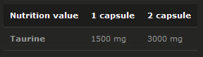 88,7% taurina, incrementador de volumen - celulosa microcristalina; antiaglomerante - sales magnésicas de ácidos grasos; cápsula (gelatina, colorante: E171).
