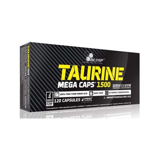 Taurine Mega Caps® de Olimp® Sport Nutrition es un excelente suplemento dietético en cápsulas que contiene una dosis inusitadamente alta dosis de pura taurina, 1.500 mg por cada cápsula de gran capacidad denominada MEGA CAPS®.