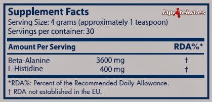 - Por cada kg de peso corporal cuenta 50 mgs de beta alanina.
