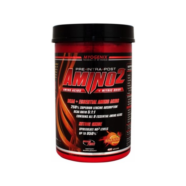 AmiNO2® de Myogenix es un nuevo suplemento que utiliza la tecnología más moderna para proporcionarte las mejoras formas de aminoácidos de cadena ramificada (BCAAs) aminoácidos esenciales y potenciadores de la producción de óxido nítrico en un solo producto para utilizar antes, durante y después del entrenamiento.