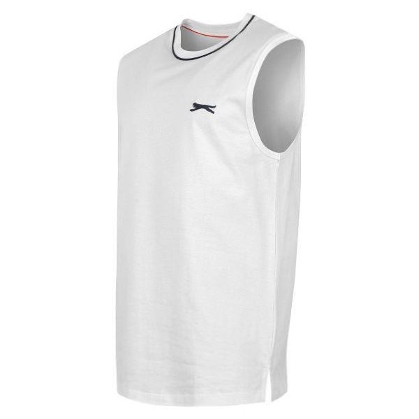 La camiseta sin mangas de hombre Slazenger es perfecta para el entrenamiento de musculación en el gimnasio, tiene un acabado estriado con dobladillo para un ajuste cómodo y está rematada con unos adornos en contraste en el cuello y el icónico logotipo de Slazenger bordado en el pecho.