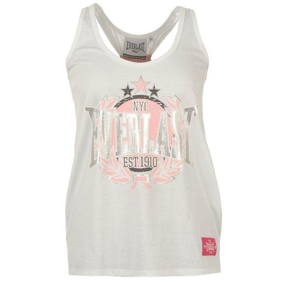 Camiseta sin mangas de mujer Everlast dentro de la colección de "Gathered Ladies", es perfecta para las amantes del fitness. Esta singular camiseta ha sido diseñada con una gran impresión original de Everlast en el pecho "Everlast - NYC est 1910" con colores plateados, negros y rosas, con la espalda descubierta.