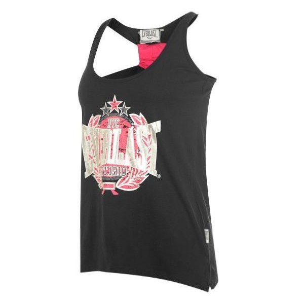 Camiseta sin mangas de mujer Everlast dentro de la colección de "Gathered Ladies", es perfecta para las amantes del fitness. Esta singular camiseta ha sido diseñada con una gran impresión original de Everlast en el pecho "Everlast - NYC est 1910" con colores plateados, blancos y rosas, con la espalda descubierta.