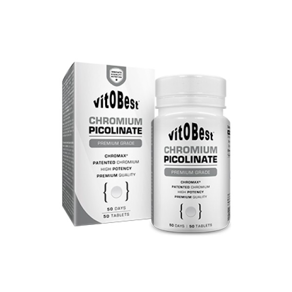 El cromo es un oligoelemento esencial que está significativamente reducido en las dietas actuales debido al procesamiento excesivo de los alimentos. El picolinato de cromo es un compuesto orgánico de cromo trivalente, un mineral traza esencial y cofactor de la insulina. Es una de las formas más biodisponibles de cromo, ya que el ácido picolínico (picolinato) es un metabolito derivado del triptófano que mejora la absorción de cromo y su biodisponibilidad.