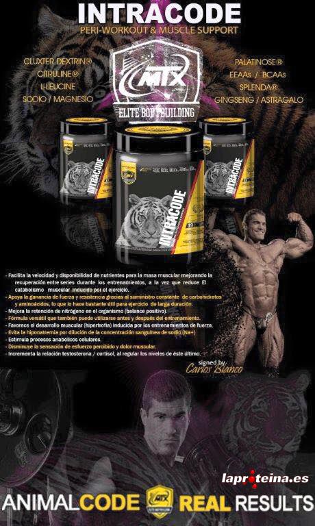 IntraCode de MTX Elite BodyBuilding es probablemente el mejor suplemento intra-entreno diseñado hasta la fecha que combina ingredientes de máxima calidad en dosis óptimas para favorecer el crecimiento muscular y reducir el cansancio durante los entrenamientos más exigentes.