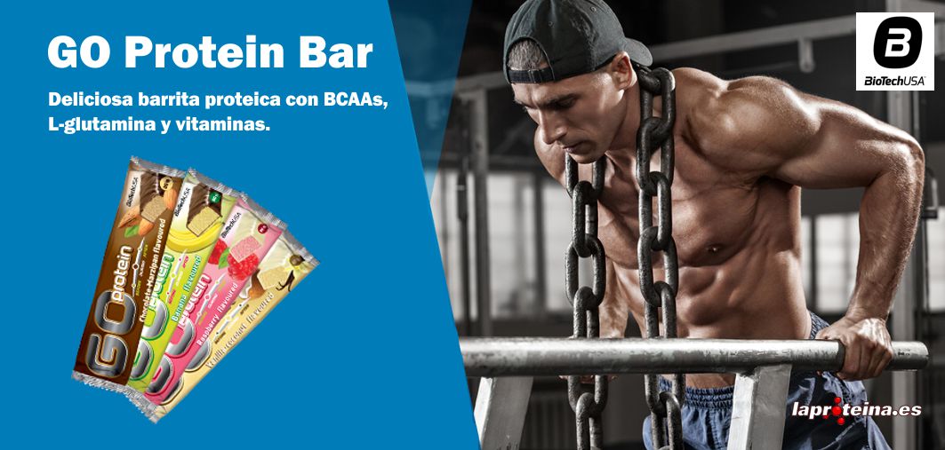 Las nuevas barritas Go Protein de BioTech USA son unas deliciosas barritas de 80 gramos altas en proteínas y enriquecidas con aminoácidos de cadena ramificada, L-glutamina y vitaminas.