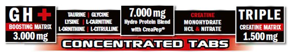 Aminoácidos, CreaPep®, estimulantes de la GH (hormona de crecimiento) y tres tipos de creatina de la máxima pureza y efectividad.