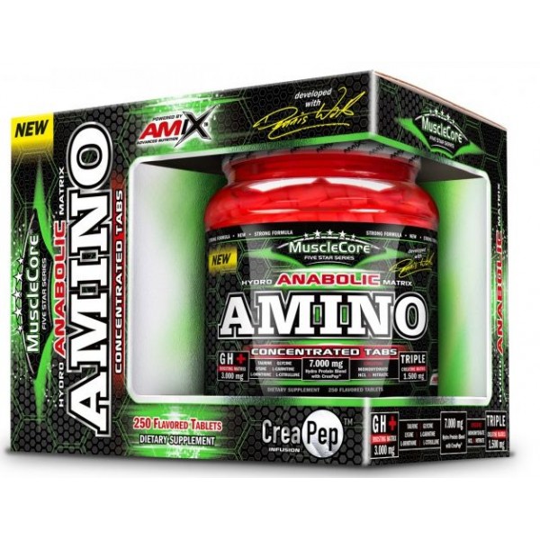 Anabolic Amino with CreaPep™ de la nueva línea MuscleCore® de Amix es un nuevo suplemento en tabletas que proporciona 7.000 mg por servicio de una mezcla de aminoácidos muy concentrados procedentes de fuentes de alta calidad, entre los que se incluye 2.500 mg de CreaPep®, unos péptidos de aminoácidos de vanguardia, además de estimulantes de la GH (hormona de crecimiento) y tres tipos de creatina de la máxima pureza y efectividad.