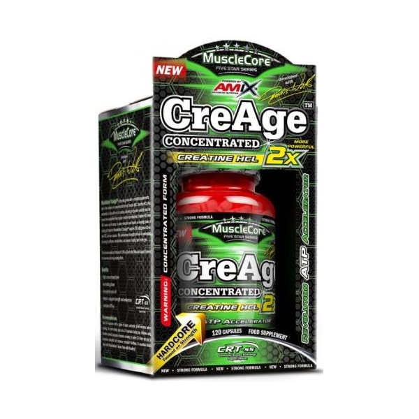 CreAge™ de la nueva línea MuscleCore® de Amix™ es un suplemento que proporciona 1.500 mg de creatina hidrocloruro por dosis de 2 cápsulas.