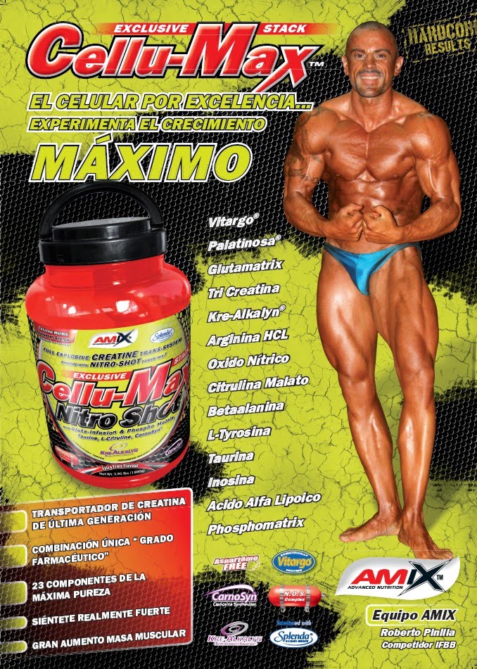 Cellu-Max™ Nitro Shot de la marca nº1 en Europa Amix™ Nutrition, es un voluminizador celular que contiene una mezcla de 6 gramos de una matriz de creatinas avanzadas junto con un sistema de transporte celular de última generación que utiliza una formulación única que contiene carbohidratos complejos disacáridos y polisacáridos que proporcionan una energía que se libera de forma sostenida para garantizarte una fuerza y energía de larga duración.