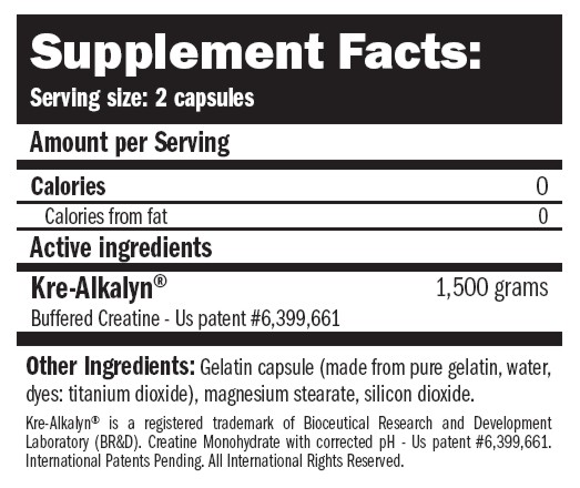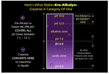 Kre-Alkalyn® es una nueva forma de Creatina. Sin embargo, es la mejor forma de Creatina (Creatina Monohidrato) que ha sido estabilizada. Kre-Alkalyn® es procesada con un pH superior que la Creatina Monohidrato.
