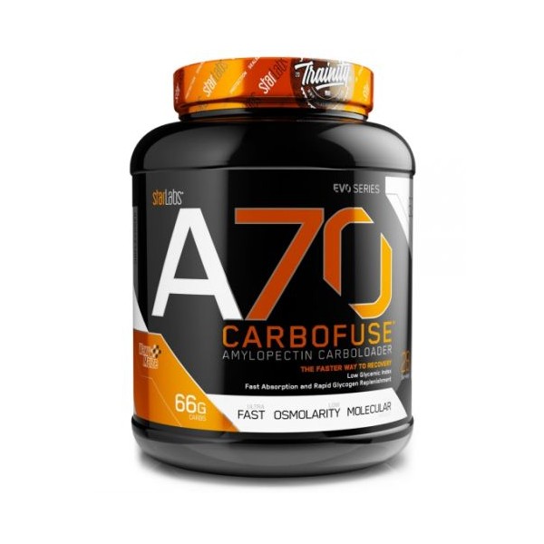 A70 Carbofuse™ de StarLabs es una fórmula de amilopectina de maíz para reponer rápidamente el glucógeno muscular.