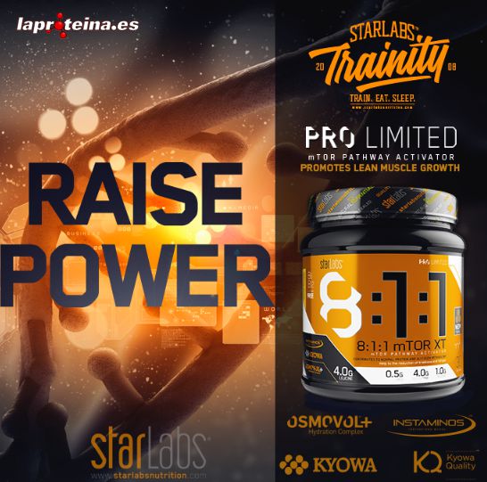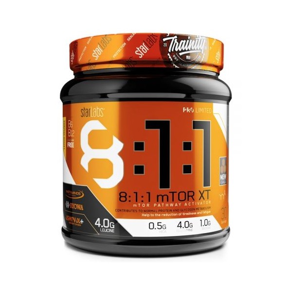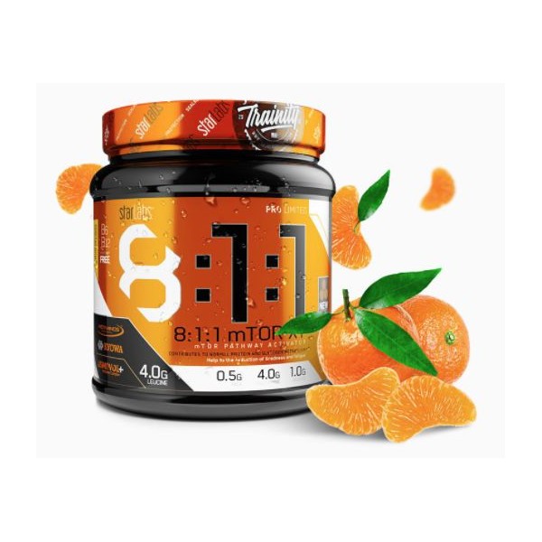 8:1:1 mTOR de StarLabs es una fórmula todo en uno diseñada para utilizar después del entrenamiento que contiene contiene dos exclusivas matrices patentadas: una mezcla de vanguardia con los aminoácidos anabólicos más importantes entre los que se incluyen los BCAAs en un ratio especial 8:1:1 (mTOR Pathway® Activator) y un complejo para la hidratación celular con las vitaminas y minerales clave (Osmovol+ Hydration Complex®).