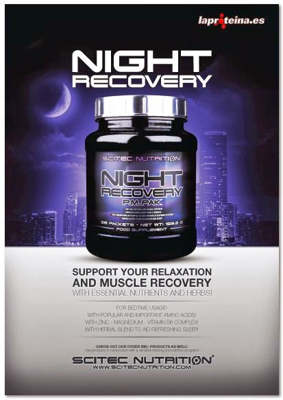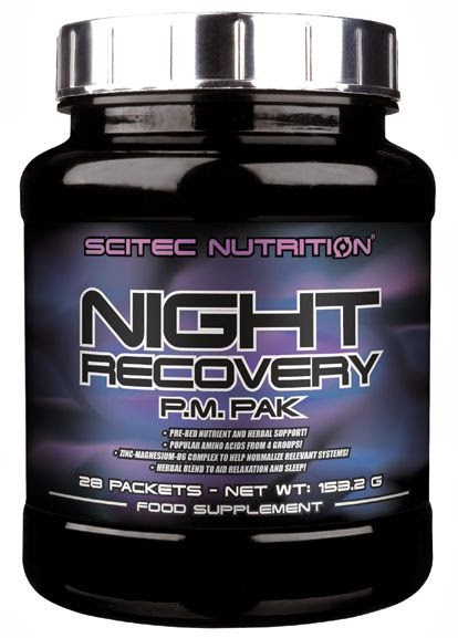 Night Recovery P.M. Pak de Scitec Nutrition es una fórmula especial de apoyo nutricional nocturno que contiene una matriz con los aminoácidos más importantes, una mezcla de extractos herbales entre los que se encuentra el extracto de Lúpulo, de Valeriana y de Melisa junto con L-triptófano, y potenciado con la mezcla de ZMA.