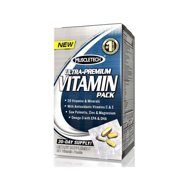 Ultra-Premium Vitamin Pack de la nueva línea 100% Ultra-Premium Series de Muscletech es un complemento multivitamínico y mineral reforzado con saw palmetto y ácidos grasos esenciales que te ayudará a proporcionar los nutrientes esenciales para apoyar los músculos que trabajan duramente en el gimnasio además de garantizar la salud general del cuerpo.