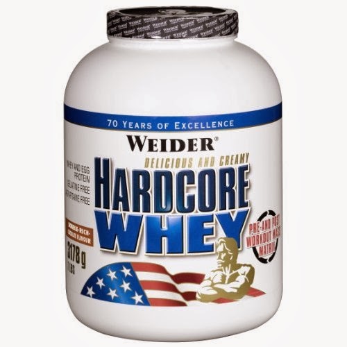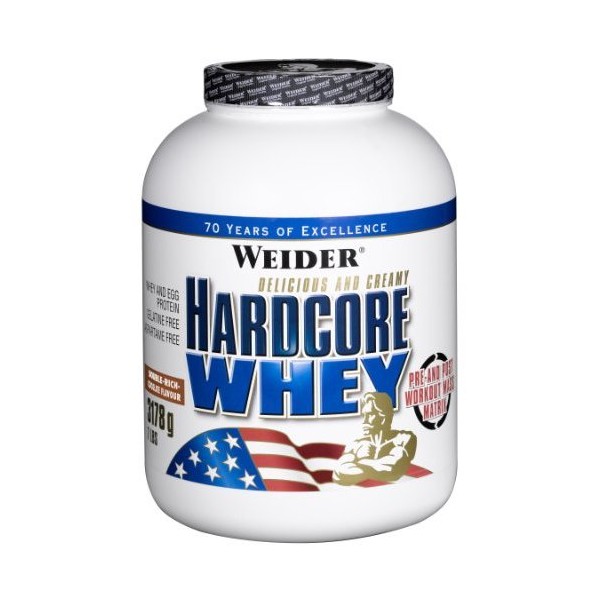 Hardcore Whey de Weider dentro de la línea dirigida a culturistas y atletas profesionales Global Weider es una proteína diseñada para utilizar antes y después de entrenar y que contiene proteína de suero de leche de rápida absorción y la cantidad adecuada de carbohidratos de liberación rápida.