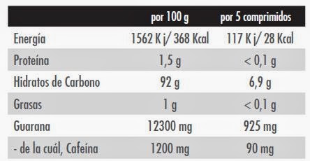 Tomar 5 comprimidos (dependiendo del peso corporal) unos 10 o 20 minutos antes del entrenamiento.