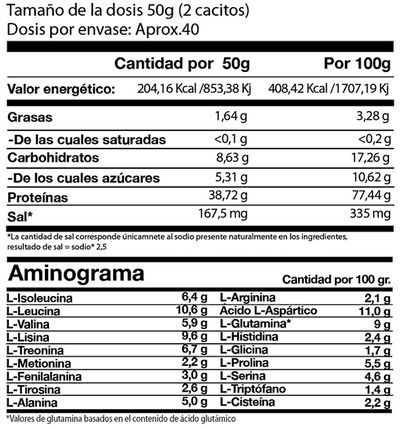 Se trata de una proteína muy baja en grasa y carbohidratos con un gran aminograma y que no contiene añadidos supérfluos de relleno como carbohidratos o proteína de menor valor biológico.